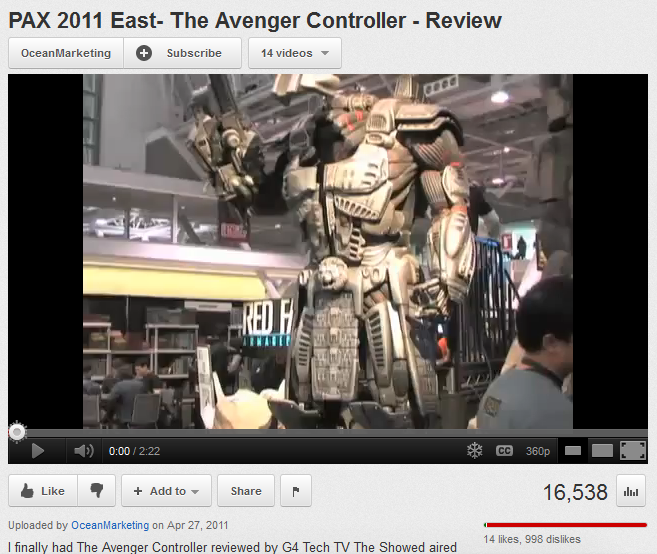 Following the release of the email exchange on December 26th, the company’s Twitter account name was first changed from “@OceanMarketting” [16] to “@OceanStratagy”[17] before being changed again to “@OceanDeepSea.” The company’s YouTube channel[13] received a large number of dislikes for each video uploaed, with the most disliked being the “PAX 2011 East- The Avenger Controller – Review” that accumulated nearly 1,000 dislikes in 24 hours. An email was posted to Reddit[12] claiming that Ocean Marketing would no longer be responsible for marketing the Avenger products on December 27th.