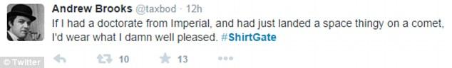 #Shirtstorm and #Shirtgate are Twitter hashtags that arose in reaction to a shirt worn by British scientist Dr Matt Taylor during livestream coverage of the spacecraft Philae’s comet landing during the Rosetta Mission in November 2014.
