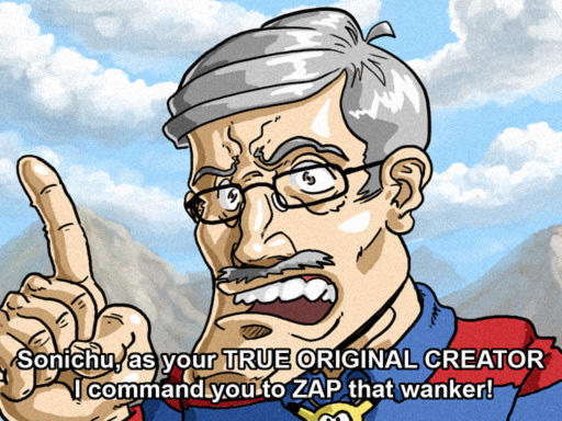 Around the same time of the Blanca saga, another troll, under the guise of English association football personality Jimmy Hill, claimed to be the true creator of Sonichu, and had turned the series into a successful franchise in the United Kingdom.[52] Chris, offended by the portrayal of the Sonichu universe in Jimmy Hill’s version (Sonichu as a homosexual, Chris as an evil robot, etc.), as well as the supposed plagiarism of his work, addressed him several times, starting in a video from September 11, the same day as the first nude leaks.[53] In a video dated October 13, Chris addressed Jimmy more directly (shown below, right).[54] However by February of 2009, Jimmy’s site was no longer being updated, and Chris decided to stop paying attention to him.