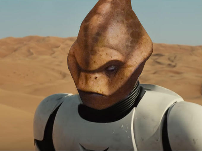 This unamed character was spotted in the Star Wars set in Dubrovnik by several people, he is one of the two alien races that were spotted on set the other which is compared to the Ayy Lmao meme. Umbrelien was seen holding an umbrella in one image and has been associated with it.