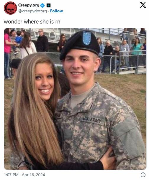In the photo, which was purportedly posted to 4chan back in early 2015, the two are seen smiling and embracing, the boyfriend wearing a U.S. Army uniform.