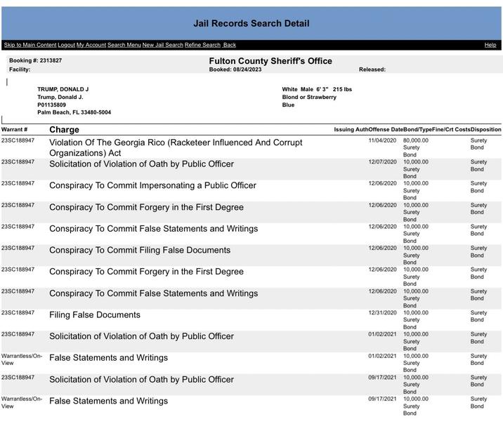 This means that for the 13 charges Trump has on him in Georgia, a traditional appearance, booking and bailing process had to occur, including a publicly released mugshot.