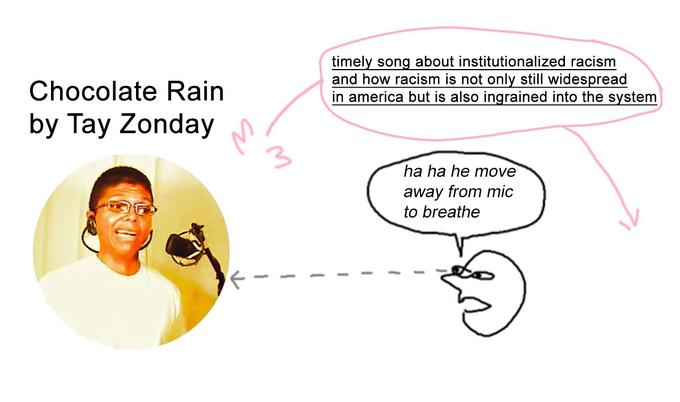 A: I rushed “Chocolate Rain” to completion because another song of mine, “Love,” was picked by YouTube to be a front-page feature. I wanted to double-dip on the exposure and have a new song on my YouTube channel while the old one got featured. Nothing about it stuck out to me at the time besides being another piece of experimental art.