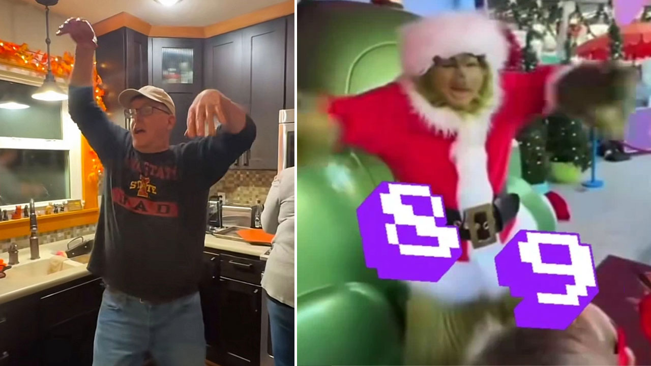 On November 26th, 2025, Instagram and TikTok user @officiallyjordanmoore posted a video showing her kids saying "67" to the Grinch at Whoville in Universal Studios Hollywood, prompting him to squat down, wave his hands sideways, and say "89." The video gathered over 5 million views on Reels[3] and over 200,000 plays on TikTok.[4]