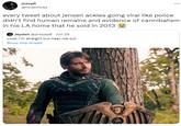 Anne Hathaway Cannibalism Copypasta or Like Police Didn't Find Human Remains and Evidence of Cannibalism in Her LA Home is a copypasta derived from a viral tweet posted in June 2022 falsely claiming that police found human remains and evidence of cannibalism in a home Anne Hathaway sold in 2013. The tweet became a prevalent copypasta over the following months where users replace Anne Hathaway with another celebrity or character.