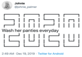 ASCII 2020 Slogans is phrasal template depicting the year 2020 using ASCII Art. Splitting the symbols in two is a message the meme's author would like to communicate as a theme for the new year. The template follows the format:
