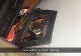 Bro WTF My Pilot Doing refers to a photo taken while boarding a plane of the pilot sitting at his seat in the cockpit looking at the screen of what appears to be a laptop. The image on the laptop screen is photoshopped to change the context.