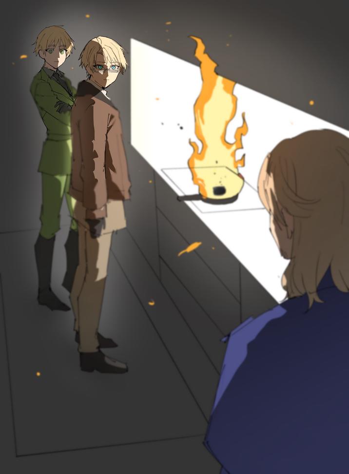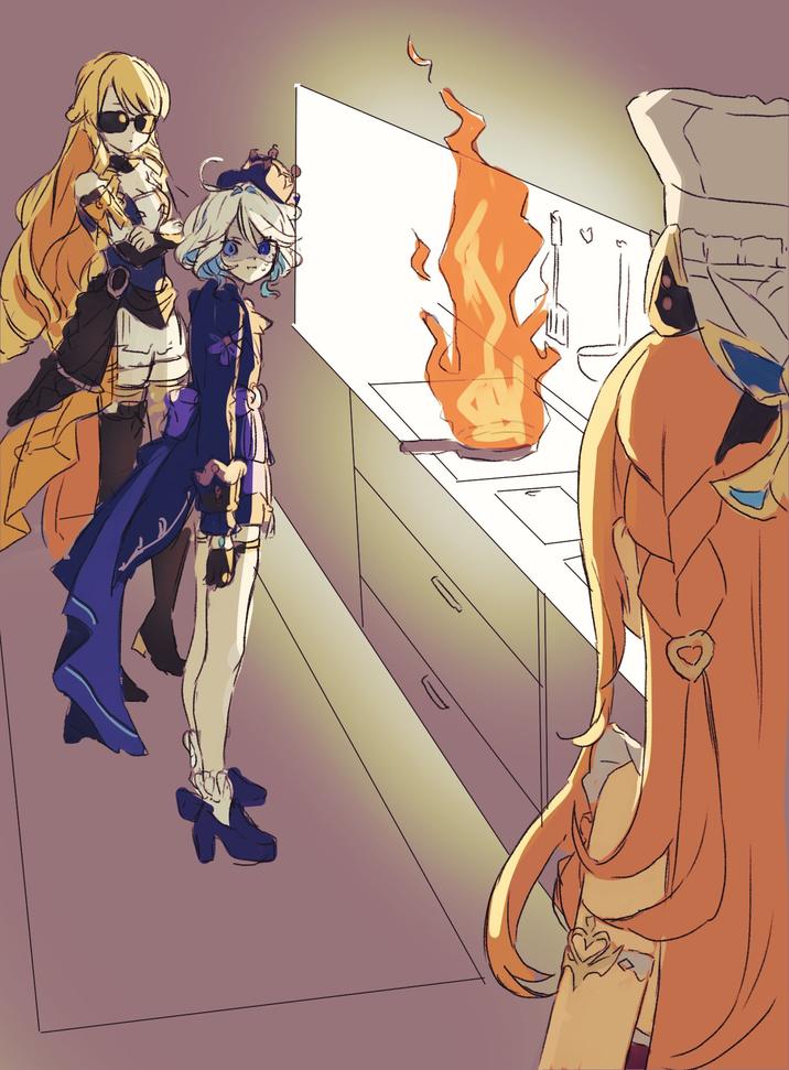 On February 19th, 2026, X[1] user @tacowasab_Brian uploaded artwork of two characters in chef suits standing in the kitchen trying to cook food in a frying pan. The pan is on fire. A third character watches them from the foreground. The caption roughly translates to "Chocolate making." The post received more than 8,000 likes in five days.