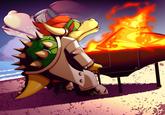 Burning Piano refers to a video of a man in a suit playing a burning piano on a beach. The clip and still image were both used as reactions referring to someone arranging great music for films or games.