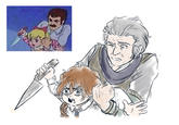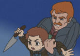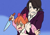 The scene comes from the 45th episode of Chargeman Ken! titled "When the Cuckoo Clock Strikes Three", which first aired on May 31st, 1974.[1] In the scene (shown below), Caron Izumi is hypnotized by a pianist's cuckoo clock, and is ordered to kill her older brother, Ken Izumi, at 3AM. At 3AM she wakes up, grabs a knife and goes to her brother's room to attempt to stab him. However, Ken dodges the attack and the resulting commotion brings their parents into the room. Afterwards, their father restrains her as she is still wielding the knife.
