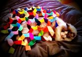 In the following years, the practice became closely associated with LOLcat image macros and the photos were published through websites like I Can Has Cheezburger. On July 29th, 2010, the single topic blog Cat Stackers[13] was launched. As of September 2013, "cat stacking" images remain in active circulation through Flickr, Reddit and Tumblr under various tags including "not a single fuck was given that day" and "cat jenga" among others.