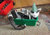 Later that same week on March 27th, 2003, Flickr user equestrian_statue[1] uploaded a photo titled "Cat Buckaroo," which shows a cat resting on a couch with a pile of household items and toys stacked on top. Cats can be seen as the ideal type of animal for balancing objects due to their perceived laziness and high threshold for give-a-fuck-ability.
