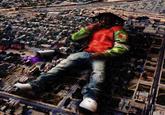 On February 25th, 2022, Chief Keef posted an image to Instagram[10] of himself as a giant lying on top of a cityscape from a birds-eye view, a cup of lean beside him, writing, "On the way to Ukraine 🚶💥🔫🏃," gaining over 845,000 likes in eight hours (shown below). He also posted the link to Twitter,[11] gaining over 20,000 likes in the same span of time.