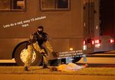 In mid-August 2020, more memes based on the photograph were posted both on Russian-speaking and English-speaking social networks, including viral posts on VK, Reddit and Facebook. In many examples, the man lying on the ground was edited out.