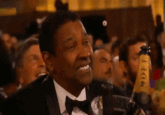 The camera then quickly switched its angle to capture the reactions of several celebrity guests in the audience, including Denzel Washington, who initially grinned at Foxx's shout-out to his goatee beard, though his smile quickly faded as the joke took an unexpected turn at the expense of Steve Harvey's now-notorious faux pas (shown below).