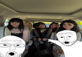 E-Girls In a Car is a photograph of five e-girls, Angelicatlol, Soogz1, Valkcy, Cupkatez and Emmyuh, sitting in the backseat of a car. The photograph was posted to Twitter by Angelicatlol in November 2022 and went viral over the following months, inspiring memes including image macros, with one popular example claiming the girls are femboys.