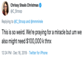 On December 14th, 2019, the controversial California church, Bethel Church,[4][5] started a GoFundMe for the family which has raised over $40,200 of its $100,000 goal in four days.