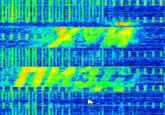 Starting on January 8th, the pirate(s) broadcasted multiple memes over the frequency (examples shown below). For example, on that day, an image of the Guy Fawkes mask and the PornHub logo were broadcast[7][8] (shown below, left and center), as well as multiple messages written in Russian,[9] including swear words, anti-Russian and anti-Ukrainian messages (shown below, right).