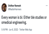 Every Woman Is Bi. You Just Need To Find Out If It's Polar Or Sexual is a catchphrase used online that started in memes on Facebook in 2018, however, it's also rumored to be a joke from stand-up comedian Owen Benjamin. Going into the early 2020s, it became a phrasal template on Twitter due to a retweet from Washington Post writer David Weigel that sparked a viral debate involving fellow staffer Felicia Sonmez who was let go from the publication after a week-long controversy in 2022.