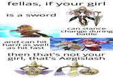 Fellas, If Your Girl or refers to a series of image macros which start off by saying "Fellas, if your girl," present a list of traits which would lead someone to identify "their girl," and end with a surprising character as the punchline. The meme is very similar to He's Not Your Man, though done in image macros instead of tweets.