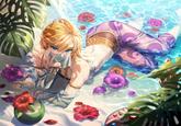 Link wearing a Gerudo outfit began to to be referred to as "Femboy Link" in the early 2020s, alongside the rise of "Femboy" as a popular slang term describing effeminate men. For example, On April 16th 2020, Pixiv[6] user 消炭 (Keshizumi) posted an illustration of Zelda and Link wearing each others' clothes (shown below, left). On July 12th, 2021, Redditor LORD-POTAT0 posted to /r/femboymemes[7], titling the post "I love femboy link", gaining over 1,300 points in two years. On January 18th, 2023, @guftrup posted 3D art of Link on Twitter[7], featuring Link being dressed up in a Gerudo outfit by Zelda and Urbosa. The tweet gained over 30,600 likes and 4000 retweets in four months (shown below, right).