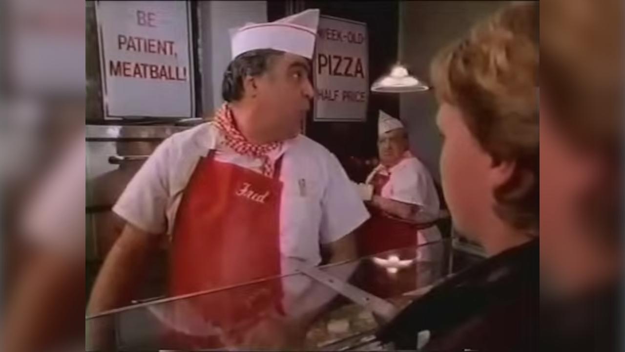 In the commercial, three kids go to a pizzeria and tell the man at the counter, named Fred, to give them a pizza with extra cheese, but hold the tomato sauce and crust. Fred looks at them in disbelief and turns back to tell the pizza chef behind him, who is named Jimmy, to "Gimme a cheese with nothin'!" Jimmy looks back, also in disbelief, and replies, "Nothin'!?"