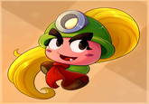 While Goombas are typically known for being loyal to the Super Mario villain Bowser, Goombella is depicted as an independent resident of Rogueport studying archaeology at the University of Goom. She is Mario's first ally in the TTYD, joining his party after he saved her from being attacked by Lord Crump and his minions.[1]