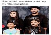 On November 30th, 2016, Redditor TheScientist-273 posted a family photograph of a goth family where the young son is the only non-goth to /r/me_irl,[1] garnering over 5,300 upvotes in six years (shown below, left). The photo may originate from awkardfamilyphotos.com,[2] however, this is unconfirmed. On December 12th, 2016, eBaum's World[3] shared an image macro using the image in a listicle that gained over 131,000 views in six years (shown below, right). It was reposted online numerous times, including by Facebook[4] page Dark Humor in December 2017, garnering over 1,500 reactions and 600 shares in five years.