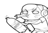 On June 6th, Kotaku[8] published an article about the illustrations titled "Overwatch Fans Have Turned DVA Into a Dorito-Eating Gremlin." The same day, Tumblr user automaton-dreams posted an aesthetic version of Gremlin D.Va (shown below, left). The following day, Tumblr user blackbookalpha posted a webcomic in which the Overwatch character Pharah shoots bottles of Mountain Dew at D.Va (shown below, right).