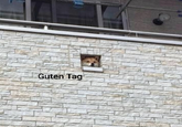 Guten Tag Dog is an image macro featuring a Shiba Inu peeking its head out of a small hole on a balcony with the caption “Guten Tag,” which is German for “good day,” next to the dog. Although the original photo appeared in 2016, the image became popular on Reddit in late July 2020 as a reaction image paired with captions describing the arrival and appearance of someone or something, sharing many similarities to the Bonjour Bear meme.