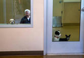 Guy Fieri Staring Through a Window is an image macro series featuring a photograph of Guy Fieri staring through the window of a restaurant at a man at a booth with a basket of fries and a burger.