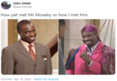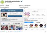 On April 19th, 2020, Twitter user @jappoffjones[3] tweeted two images of actor Phill Lewis with the caption, "how yall met Mr Moseby vs how I met him" (shown below, left). The tweet received over 60,600 likes and 16,400 retweets in 10 days. The next day, Twitter user @_colonelyh[3]compared an early screenshot Instagram's interface to the current one with the captioned, "How I met Instagram How y'all met Instagram" (shown below, right). The tweet gained over 150,000 likes and 108,100 retweets in nine days.