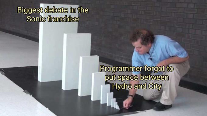 Hydrocity or Hydro City is a viral debate within the Sonic the Hedgehog fandom pertaining to the correct pronunciation of the name of the level "Hydrocity Zone." One side of the debate insists that as the level is an underwater city, it should be pronounced as "Hydro City," while the other side argues that the name should be interpreted as "hydro velocity" and therefore pronounced "hai-dross-ity."