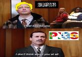 I Feel Bad For You / I Don't Think About You At All is a dialog exchange from the American TV drama Mad Men between Don Draper (played by Jon Hamm) and Michael Ginsberg (played by Ben Feldman). The scene and quotes grew prominent on the internet during the 2010s, making them the subject of various object-labeling, exploitable, fan art and parody memes.