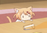 The image of Maa from the anime Nyanko Days looking at a glass of spilled juice comes from season 1 episode 3 of the show, as seen in the bottom left corner of the screen at the 2:53 timestamp in the YouTube[1] video shown below (top). The original and the cropped frame of the scene can be seen below (bottom).