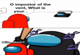 Impostor of the Vent refers to a series of memes based on a two-panel image between a Red crewmate and a Black impostor of the multiplayer game Among Us. Identical in its premise to Panzer of the Lake, the format gained popularity on Reddit in September 2020.