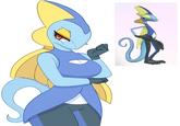 Inteleon proved divisive among fans, but nevertheless, the community soon began making fan art of the character. Deviantart user FeatherShine1 posted art of the character (shown below, left), as well as KiwiHermit on Newgrounds who posted art (shown below, right)