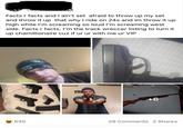 The original instance in the Insanity Crow image macro series and an image and a zoomed in photo of a cow featured captions associated Internet tough guy responses, including "What the fuck did you say?", "Fight me IRL" and "Do you even lift?" (shown below).
