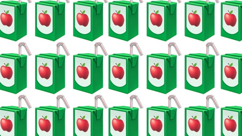 The Juice Emoji, or Beverage Box Emoji, was added as an official Unicode Emoji on March 5th, 2019, with the Emoji 12.0 update.[1][2] The Emoji is depicted as a green juice box with a white straw with a red stripe and an apple or a bundle of fruit on the front.