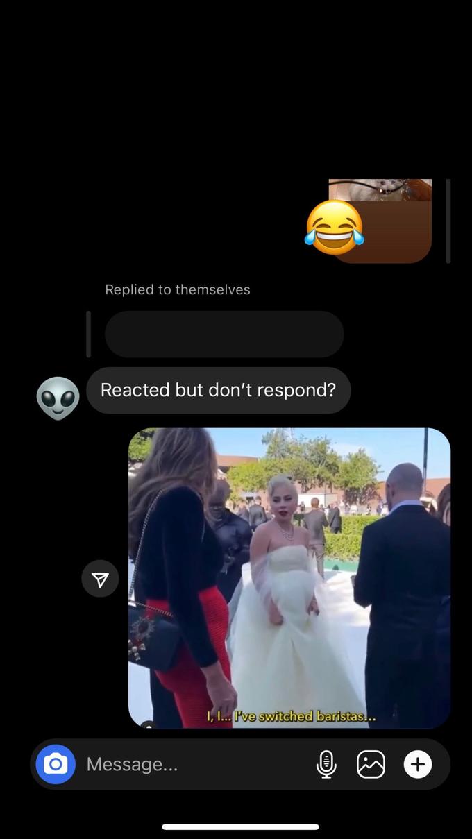 The clip was widely celebrated, with many interpreting Gaga's "I switched baristas" line as a way to excuse her avoiding coming into contact with Jenner. Twitter user @carelessbird_[1] joked that she would be using "I switched baristas" as her new "exit line," gaining over 130 likes (shown below, left). User @mattxiv[2] posted a similar sentiment, saying he'd use the phrase when avoiding someone he didn't like (shown below, right).