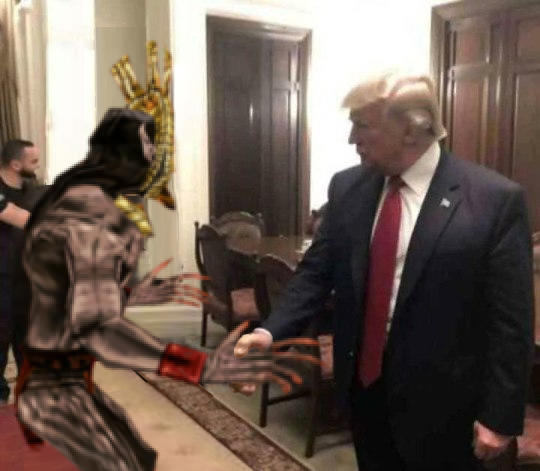 On April 8th, 2023, Redditor MasterWizardSam036 posted an AI-generated image of Resident Evil character Leon Kennedy and former U.S. President Donald Trump shaking hands inside the White House (authorship unconfirmed). The post (shown below) received over 1,100 upvotes in the /r/OneyPlays[1] subreddit in 10 months.