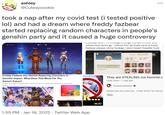 Memes from dreams began appearing on Twitter starting in April 2020. For example, Twitter[5] user @milkystar64 posted a meme they made after a dream on April 9th, 2020. The tweet (shown below) received roughly 17,000 likes over the course of a year and a half.