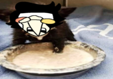 Milk Face Cat or Cursed Milk Cat refers to an image of a black kitten with thick, milky food covering its face and an upset look, a bowl full of the food under him as if he fell face-first into it. The earliest known upload of the image was posted to Imgur in May 2020. It spread across social media over the following year, becoming the subject of image macros and a reaction image, often used to represent someone as mentally or physically exhausted or in agony.