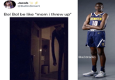 The catchphrase picked up again in August 2020 when Instagram account negusflex paired "mom, I threw up" with an image of the Shadowy Buff Guy in a Doorway format (shown below). Although the post has since been deleted, it can be seen within a Facebook[7] repost that it received roughly 8,600 likes in two days.