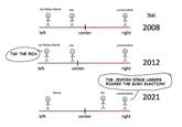 On August 6th, 2021, Twitter[1] user @SwipeWritght tweeted a political cartoon illustrating a perceived shift in the Overton window between 2008 and 2021 towards the left, with the character in the comic, who is a left-leaning individual in 2008, finding themselves in the right-wing in 2021 despite not having changed their views. The post received over 2,600 retweets and 15,600 likes in nine months (shown below).