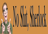 No Shit, Sherlock refers to an expression made by an individual in response to a statement that is considered obvious or stupid, similar to the term . The express is in reference to the character Sherlock Holmes created by Sir Arthur Conan Doyle who is known for making correct assumptions during his investigations.
