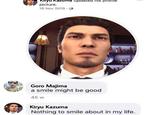 Nothing To Smile About In My Life refers to a series of exploitable redraw memes based on a 2019 Facebook post where a man changes his profile picture to a photo of himself frowning, one user commenting, "a smile might be good," the man responding, "Nothing to smile about in my life." The post was shared on Reddit in October 2020 and went viral, inspiring people to redraw it with new characters.