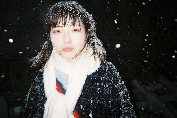 Asian Girl Smoking in the Snow