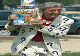 Matthew Lesko (born May 11, 1943) has authored over 20 reference books telling people how to get "free" money from the United States government. He wears Riddler-like suits in his television commercials, infomercials, interviews, and in his everyday life.