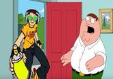 Peter Griffin At The Door refers to series of exploitable memes involving Peter Griffin from Family Guy reacting to various characters at the door of his house. The memes are sometimes accompanied by the snowclone "Holy crap Lois, it's X!" This format was an inspiration for many fan artists, who redrew it to fit characters from other pop culture references. Like Sneedposting or Maskposting, the meme has been heavily criticized for being forced and rushed. Although it's believed that the format started out as something regular Family Guy does, it's origins briefly took place on April 2018 before it was primarily popularized on 4chan and Reddit on that same year and then carried on as of 2020 onto sites like Twitter, iFunny, YouTube, and many more platforms.